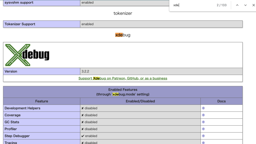これで念の為にphpinfoを実行してXdebugが設定されていれば完了です。