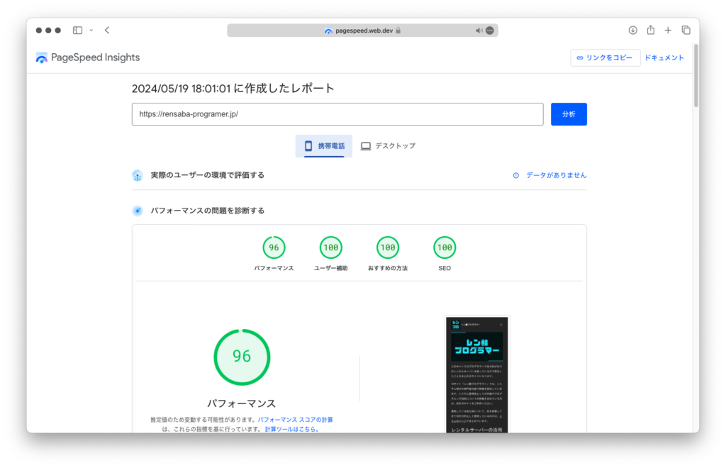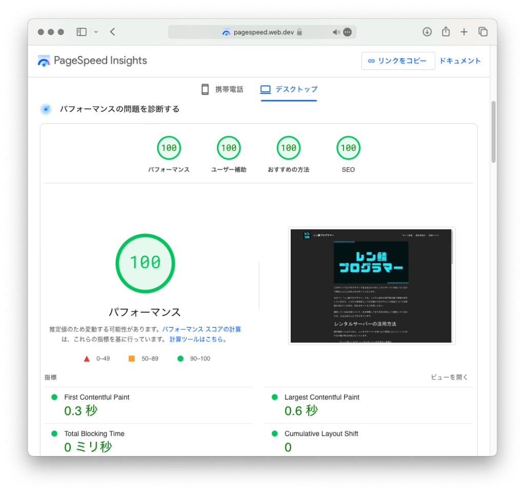 PageSpeed Insightsで100点を獲得することは、Googleが定めるWebパフォーマンスのベストプラクティスに完全に準拠していることを意味します。