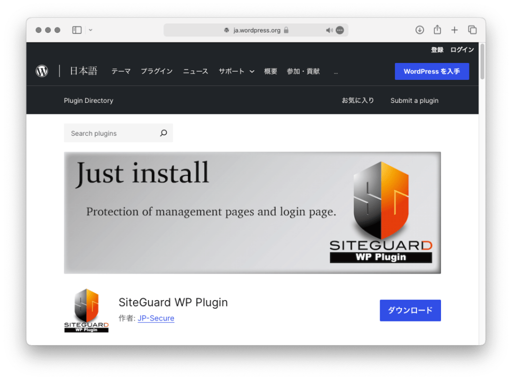 プラグインページ:https://ja.wordpress.org/plugins/siteguard/